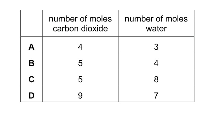 Thus the mole ratio of CO2 to H20 is 10:8=5:4.